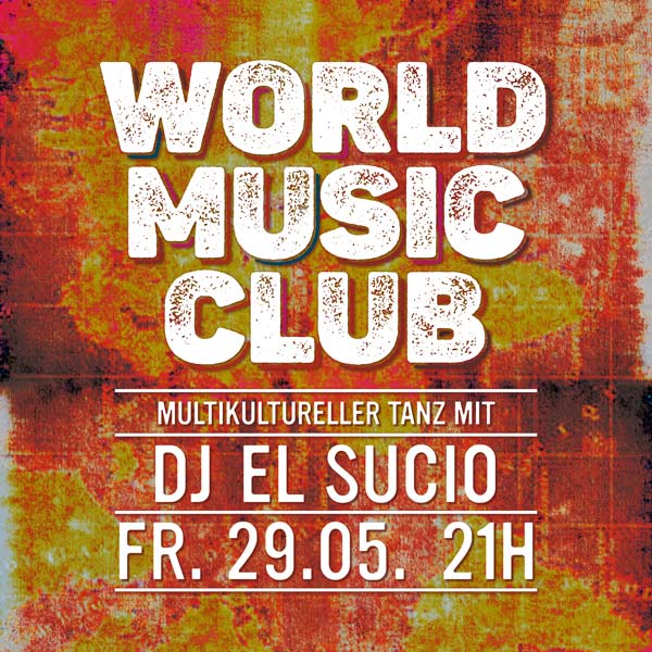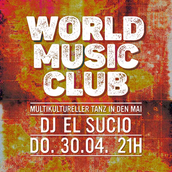 ![]() Multikultureller Tanz in den Mai mit DJ El Sucio. Afro, Balkan, Dub, Funk, Jazz, Indie, Latin, Oriental, Reggae, Ska und noch vieles mehr auf dem schönsten Dancefloor der Konstanzer Innenstadt. Für Liebhaber*innen interkultureller Tanzmusik und Mixed Music mit künstlerischem Ansatz. Die hauseigene Veranstaltungsreihe „World Music Club“ vereint alles, was das K9 ausmacht: Interkulturelle Begegnungen, Musik aus den verschiedensten Genres, virtuose künstlerische Darbietungen und noch vieles mehr. Der „World Music Club“ präsentiert diese Vielfalt auf einer Bühne und feiert die Musik dieser Welt in all ihren Facetten. Unsere Definition von World Music kennt keine Grenzen. Für uns ist World Music alles, was auf diesem Planeten erklingt. Hier wird nichts ausgeschlossen – im Gegenteil: Gerade die wilde Mischung und die ungeahnten Gemeinsamkeiten der Genres machen den Reiz aus. Ein weltumspannendes Format, das Kulturen verbindet und bewusst für Unordnung in den stilistischen Schubladen sorgt. |