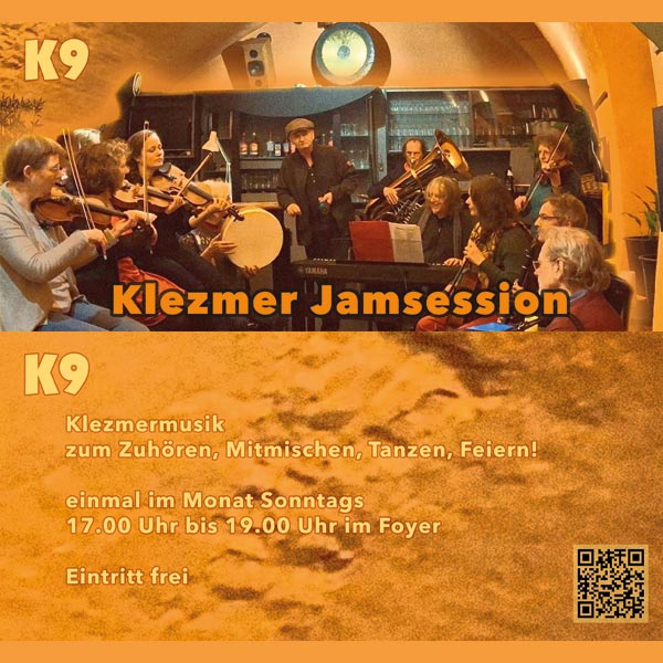 ![]() Klezmermusik fernab vom Konzertsaal - zum Zuhören, Mitmischen, Tanzen, Feiern! Mitspielende sollten sich auf ihrem Instrument auskennen und sich mit offenen Ohren auf die typische Festmusik der osteuropäischen Klezmorim einlassen. Gespielt werden ausschließlich traditionelle Melodien auf akustischen Instrumenten. |
