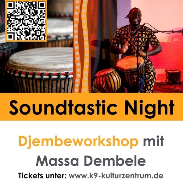 ![]() Workshop & Konzert mit Massa Dembele – Rhythmus erleben! Am Sonntag, den 21.12.2025, lädt ein Djembé-Workshop am Nachmittag dazu ein, die lebendige Welt westafrikanischer Rhythmen kennenzulernen. Unter Anleitung von Massa Dembele, Musiker, Komponist und Griot aus Burkina Faso, können Anfänger*innen wie Fortgeschrittene gleichermaßen in die Kunst des Djembé-Spiels eintauchen. Der Workshop bietet einen intensiven, praxisnahen Zugang zur traditionellen Rhythmik Westafrikas – offen für alle Erfahrungslevel! Im Anschluss findet am Abend das große Jahresabschlusskonzert im K9 statt: Massa Dembele & Band bringen mit Djembe, Kallebasse, Ngoni, Talking Drum und Drumset einen einzigartigen, traditionsverwurzelten Sound auf die Bühne. Vibrierende Percussion und feine Melodien verschmelzen zu einem bewegenden und energiegeladenen Musikerlebnis. Besonderes Highlight: Teilnehmer*innen des Workshops erhalten 5,- € Nachlass auf den Eintritt zum Konzert. Ein Tag voller Rhythmus, Energie und musikalischer Begegnungen – erst selbst spielen, dann live erleben! |