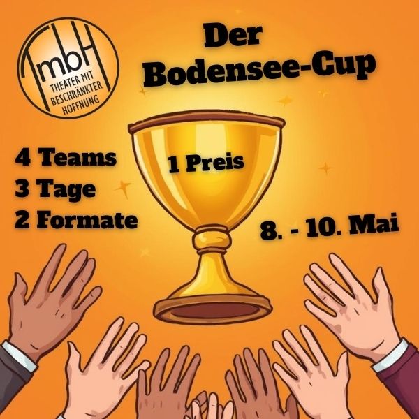 ![]() Vier Teams, drei Tage, zwei Formate – ein Preis: Der Bodensee-Cup 2026! An drei Tagen treffen hier Impro-Teams aus den Bodensee-Anrainerstaaten Bayer, Baden-Württemberg, Schweiz und Liechtenstein aufeinander um sich miteinander zu messen (Österreich ist in der Vorrunde ausgeschieden). Gewinner ist auf jeden Fall das Publikum, denn hier gibt es Impro auf Spitzen-Niveau. – Am Freitag seht Ihr die gelosten Matches Team 1 gegen Team 2 und Team 3 gegen Team 4. – Am Samstag geht es um den besten Einzelspieler, jede gegen jeden – ein Format, das die Rampensau in jedem Spieler hervorlockt und doch geht es um den „Most Valuable Impro-Player“ (MVIP). – Am Sonntag findet dann zunächst das Spiel um Platz 3 statt und das große Finale beschließt dieses einzigartige Wochenende. Wer gewinnt? Eure Entscheidung! Sei auch Du dabei, sichere Dir Dein Ticket für einen, zwei oder gleich alle drei Tage und feiere mit uns Impro vom Allerfeinsten! Anmerkung: Unter dem untenstehenden Ticketlink findet ihr Sondertickets für das ganze Wochenende sowie Kombitickets für zwei Abende des Bodensee-Cups eurer Wahl! |